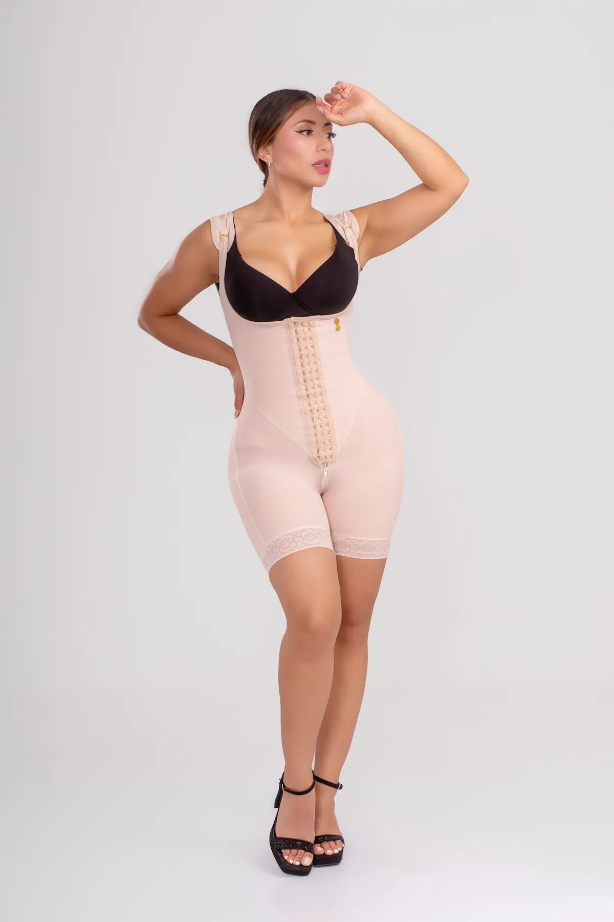 Luce una figura estilizada y cómoda en tu día a día con nuestra Faja Moldeadora de Media Pierna con broche...