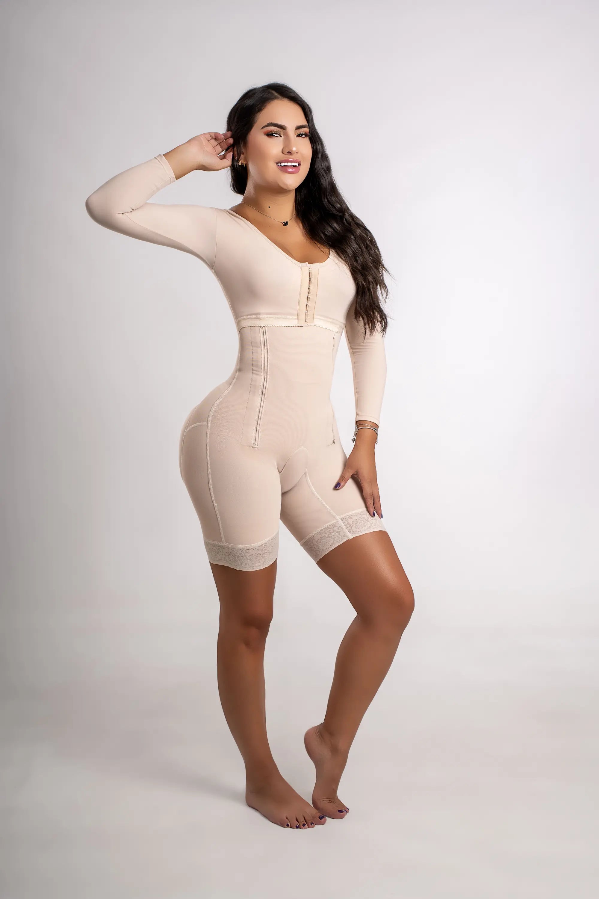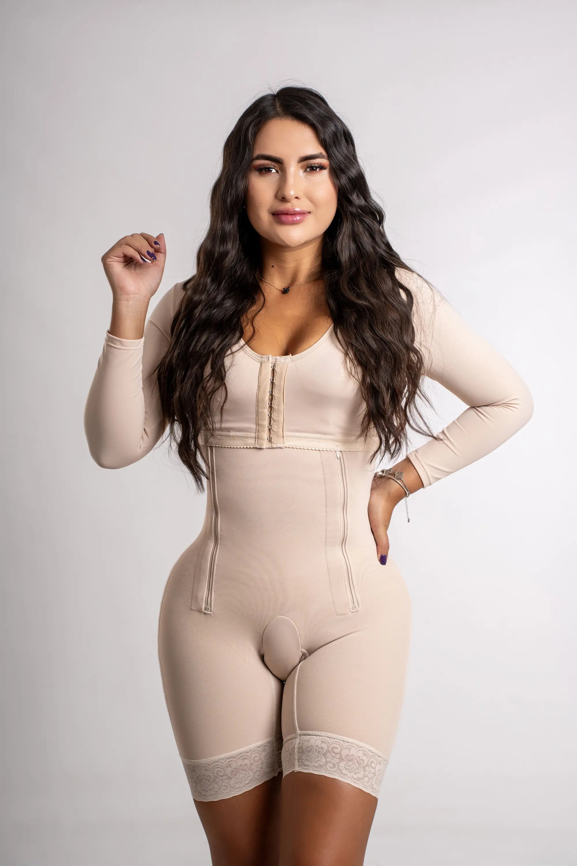 Faja Postquirúrgica con Top – Manga Larga, Doble Cierre Lateral y Levanta Cola
