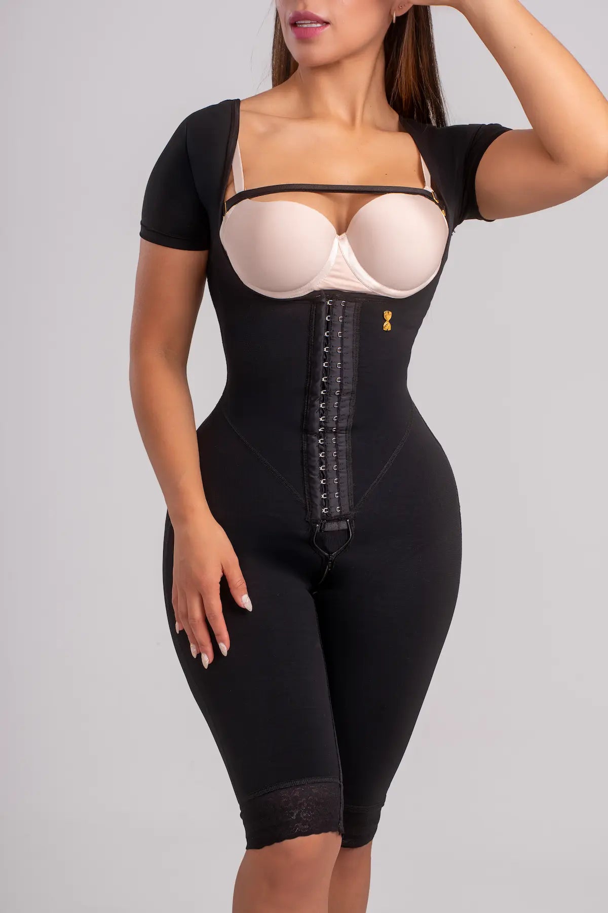 Esta faja es perfecta para su uso diario, recuperación postquirúrgica o épocas de moldeado corporal. Con su diseño elegante y funcional, podrás sentirte segura y cómoda mientras realzas tu figura. Elige nuestra faja reloj de arena con manga 3/4 y disfruta de un contorno perfecto y un soporte inigualable.