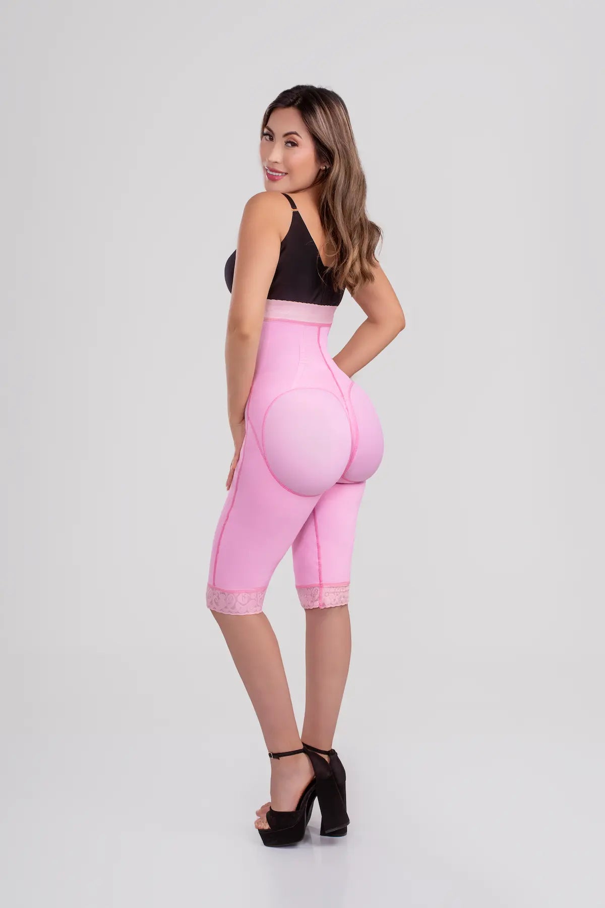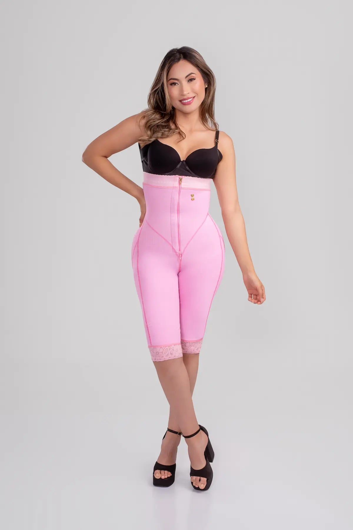 Faja corta moldeadora strapless tipo reloj arena con cierre invisible frontal , incluye tiras removibles que se ajustan a la...